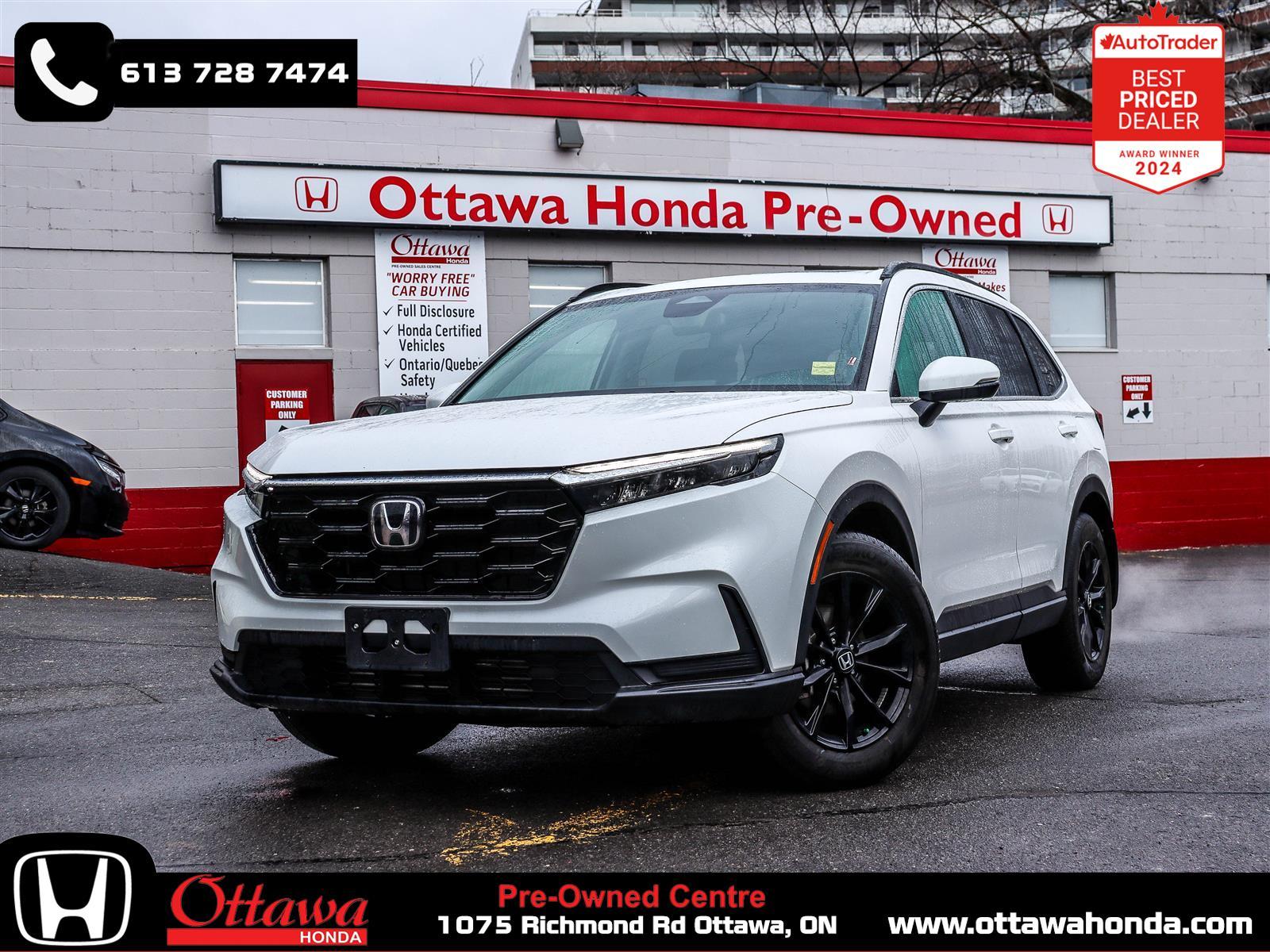 ONE OWNER ACCIDENT-FREE 2024 HONDA CR-V SPORT AWD INCLUDES A 3 YEAR TIRE WARRANTY, 3 YEAR SECURITY ETCHING WARRANTY, 3 YEAR KEY & FOB WARRANTY, IT ALSO COMES LOADED WITH SUNROOF HONDA SENSING TECHNOLOGIES BLUETOOTH APPLE CARPLAY/ ANDROID AUTO POWER TAILGATE HEATED STEERING WHEEL ALLOY WHEELS AND SO MUCH MORE. ONLY AT 1075 RICHMOND RD YOUR OTTAWA HONDA PRE-OWNED CENTRE.