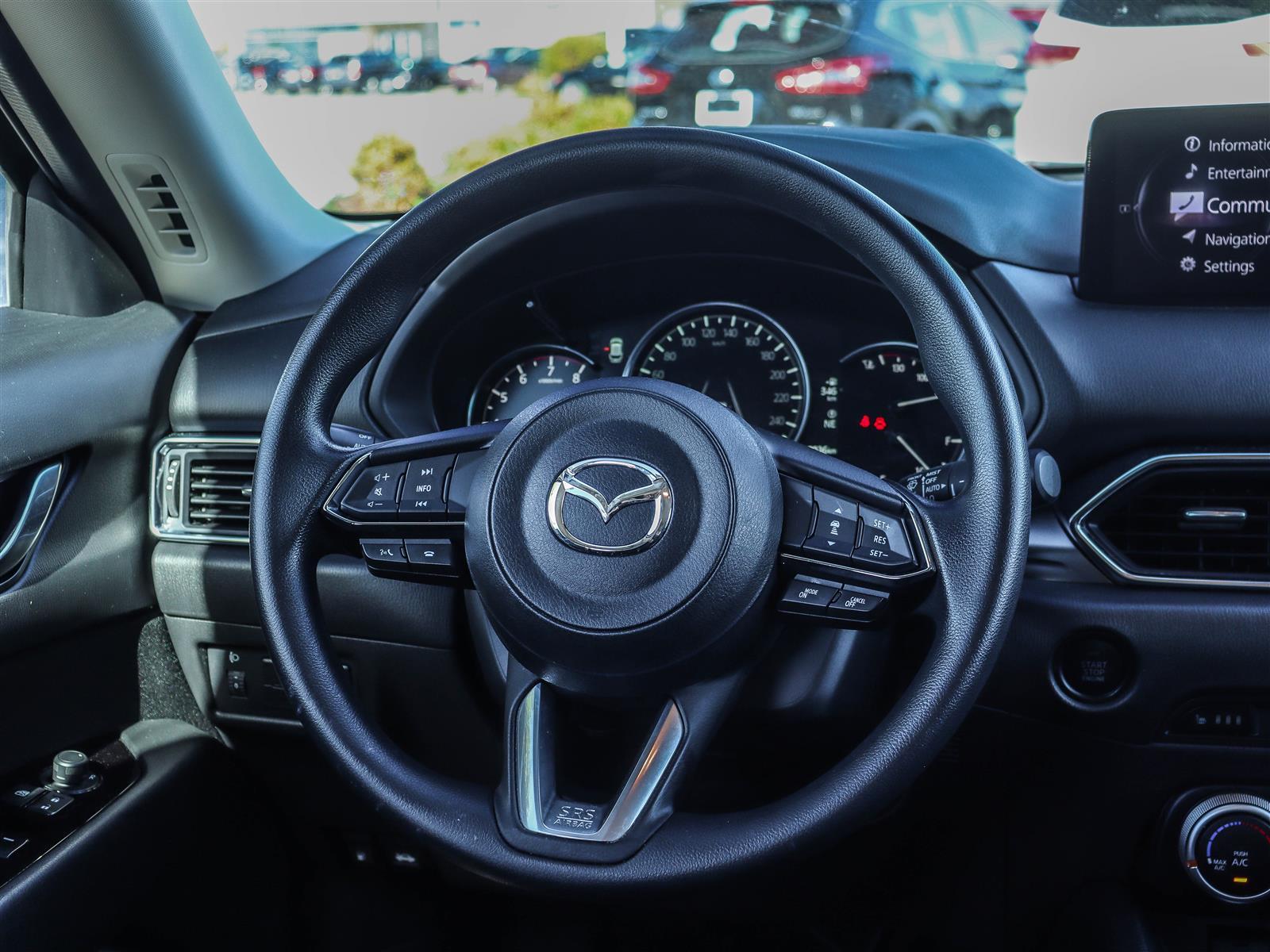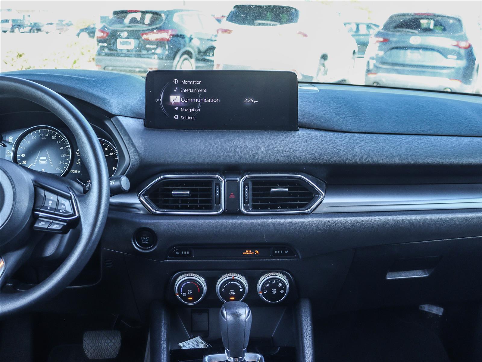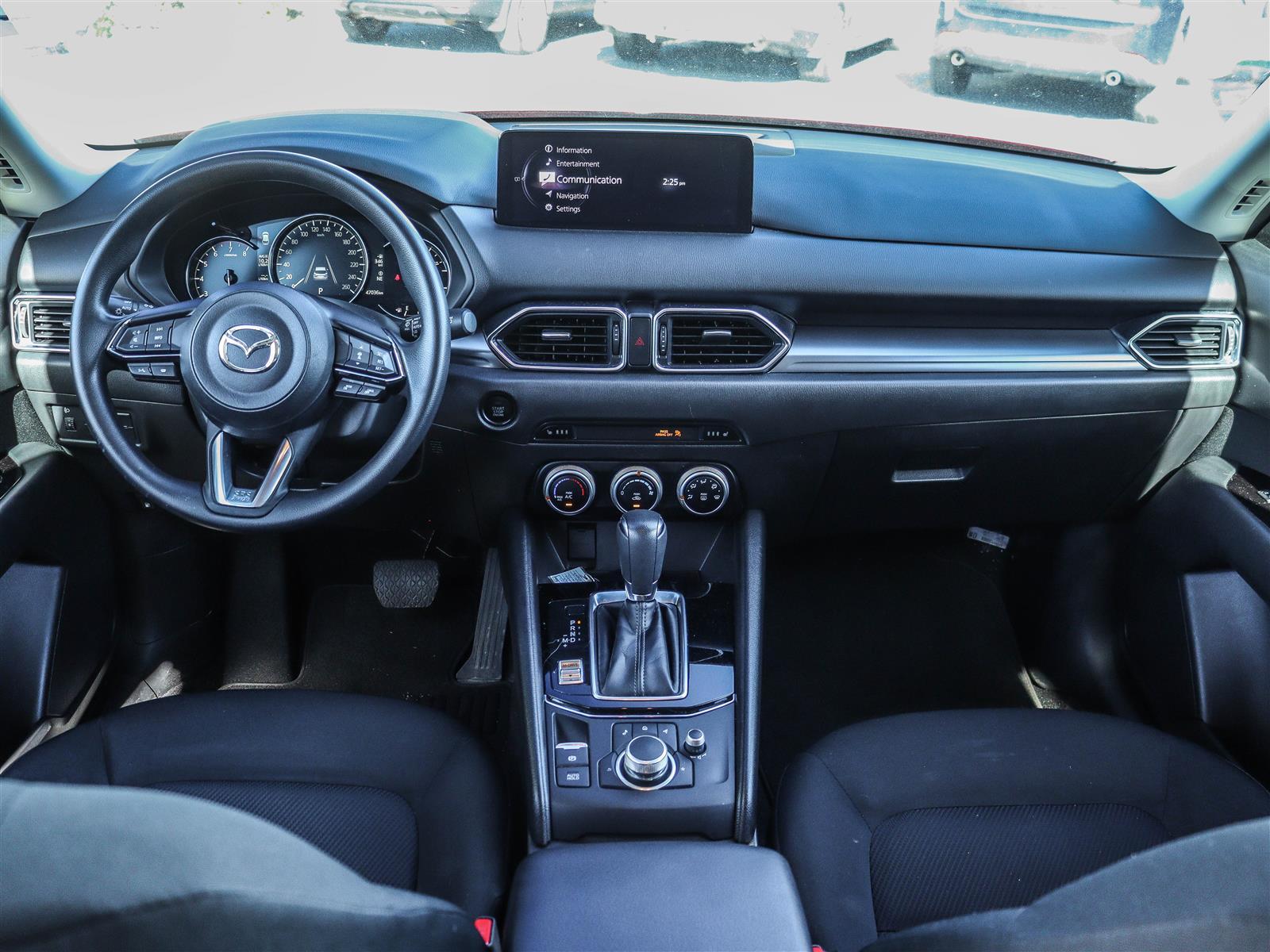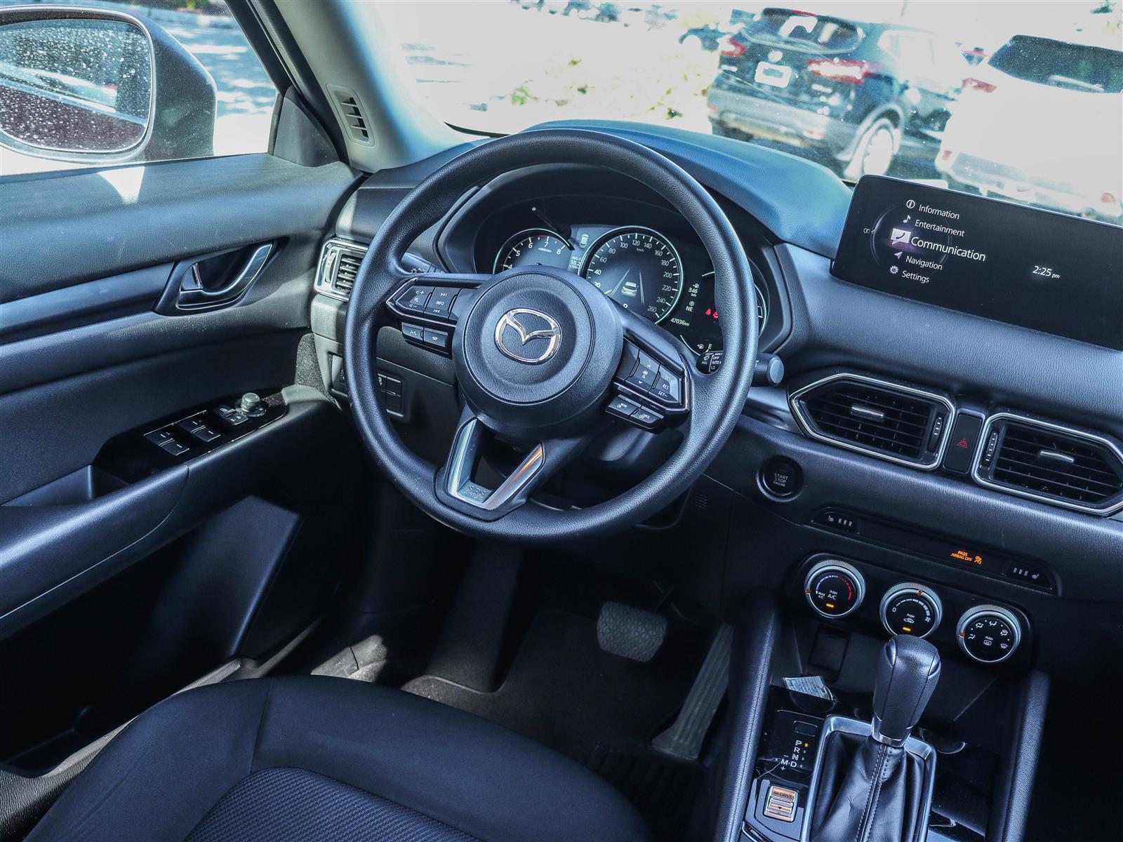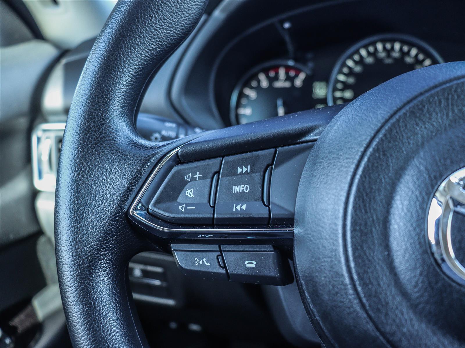 10.25″ Mazda Connect display, Apple CarPlay & Android Auto, two front USB ports, Bluetooth audio, and steering-wheel audio controls