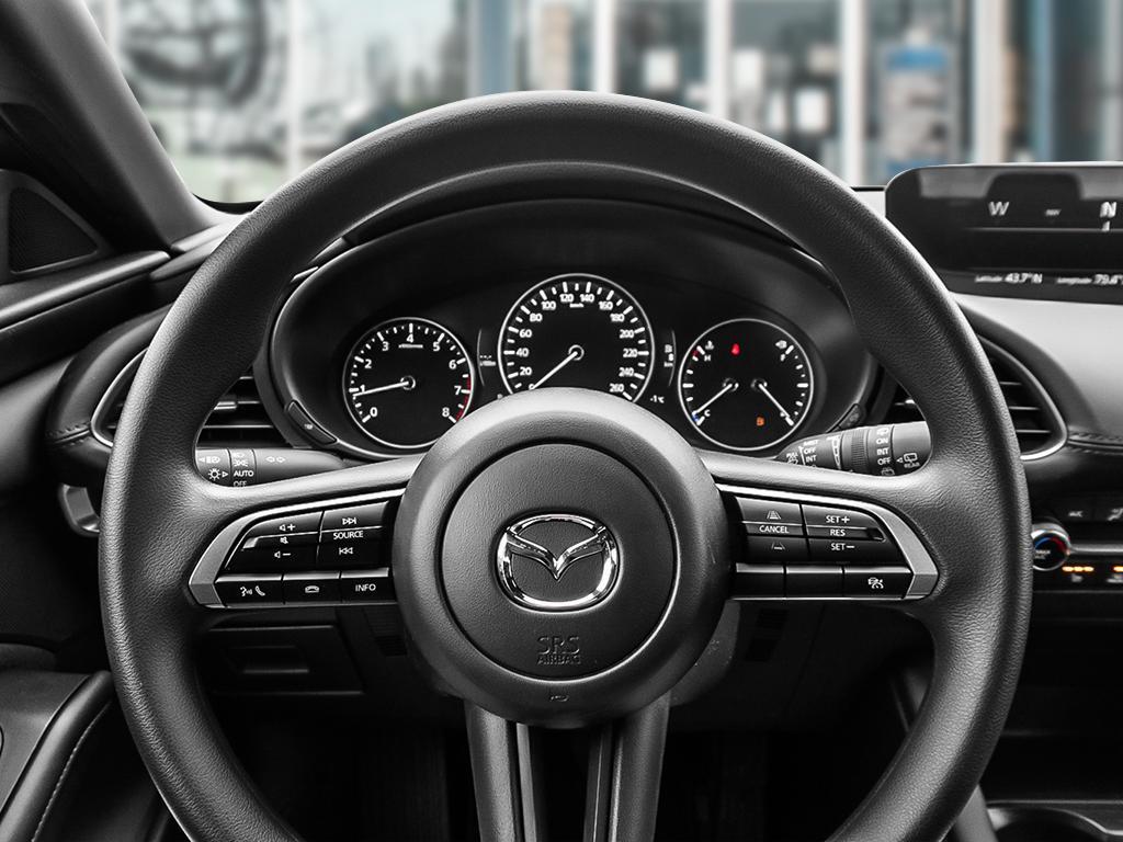 Introducing the new Mazda Mazda3 GX Auto FWD. This sedan is more than just a vehicle; it's a statement on the road, offering an engaging drive with its 2.5L 4-cylinder engine and smooth automatic transmission.The exterior of the Mazda3 is a blend of sophistication and functionality. From its stylish alloy wheels that catch the eye to the convenience of keyless entry and the practicality of a backup camera, every aspect of this car has been designed with the driver in mind. Inside, the black Mazda3 does not disappoint. The cabin is a haven of comfort and technology, boasting heated front seats for those chilly mornings, air conditioning for warmer days, and power windows for ease of use. The interior trim includes metal look accents, giving it a modern and upscale feel.Technology-wise, the Mazda3 GX is equipped to keep you connected and safe on the road. It features a comprehensive selection of tech amenities such as Bluetooth connection for easy smartphone integration and cruise control for effortless long drives. Safety is enhanced with advanced features like lane assist and brake assist, while the adaptive cruise control ensures a stress-free driving experience. Remote start adds a layer of convenience, allowing you to warm up or cool down the vehicle before you get in.This Mazda Mazda3 GX Auto FWD is an excellent choice for those who value both style and substance in their vehicle. It's ideally suited for professionals, small families, or anyone who appreciates a blend of comfort, technology, and performance in their daily drive. We invite you to contact the dealership today for more information and to experience all that this exceptional sedan has to offer.