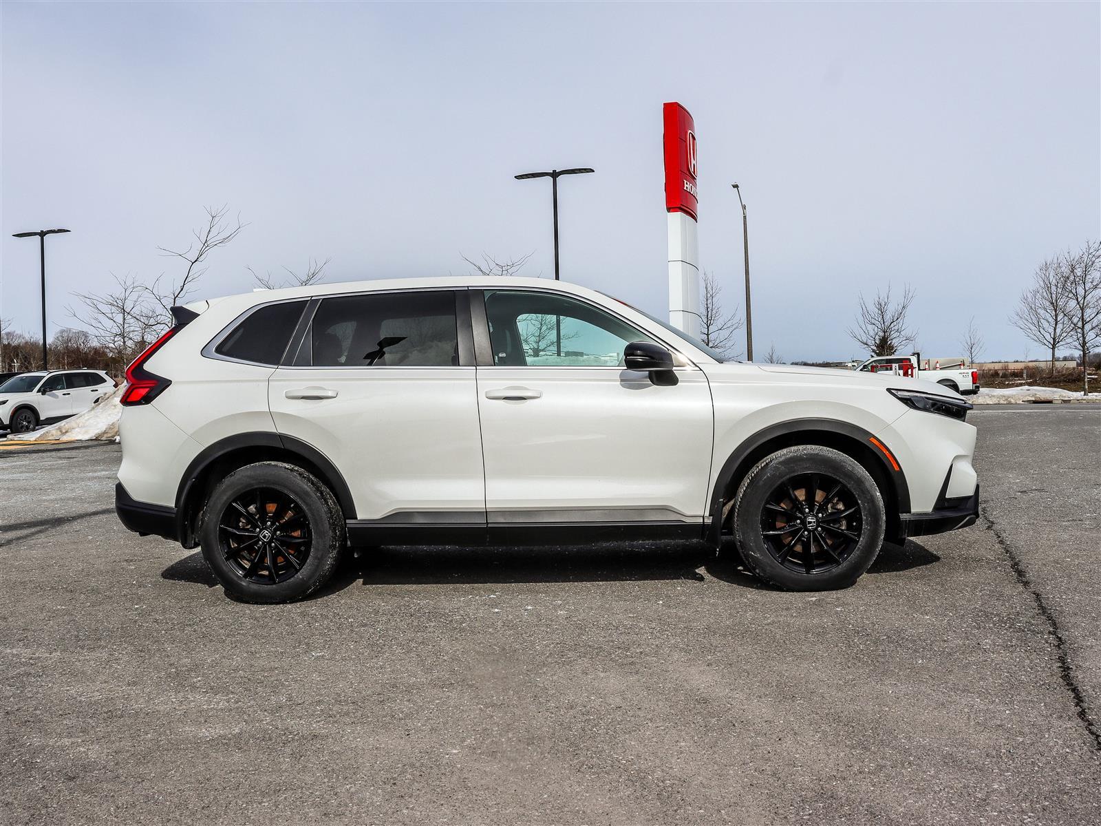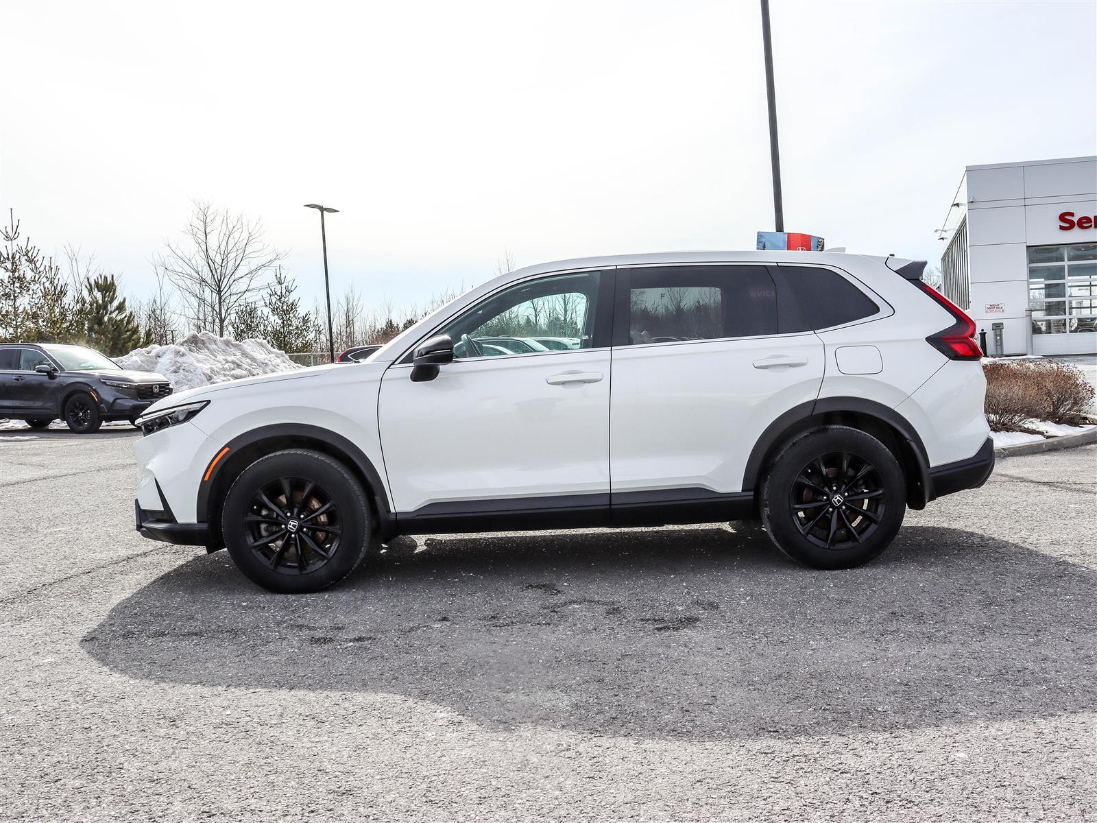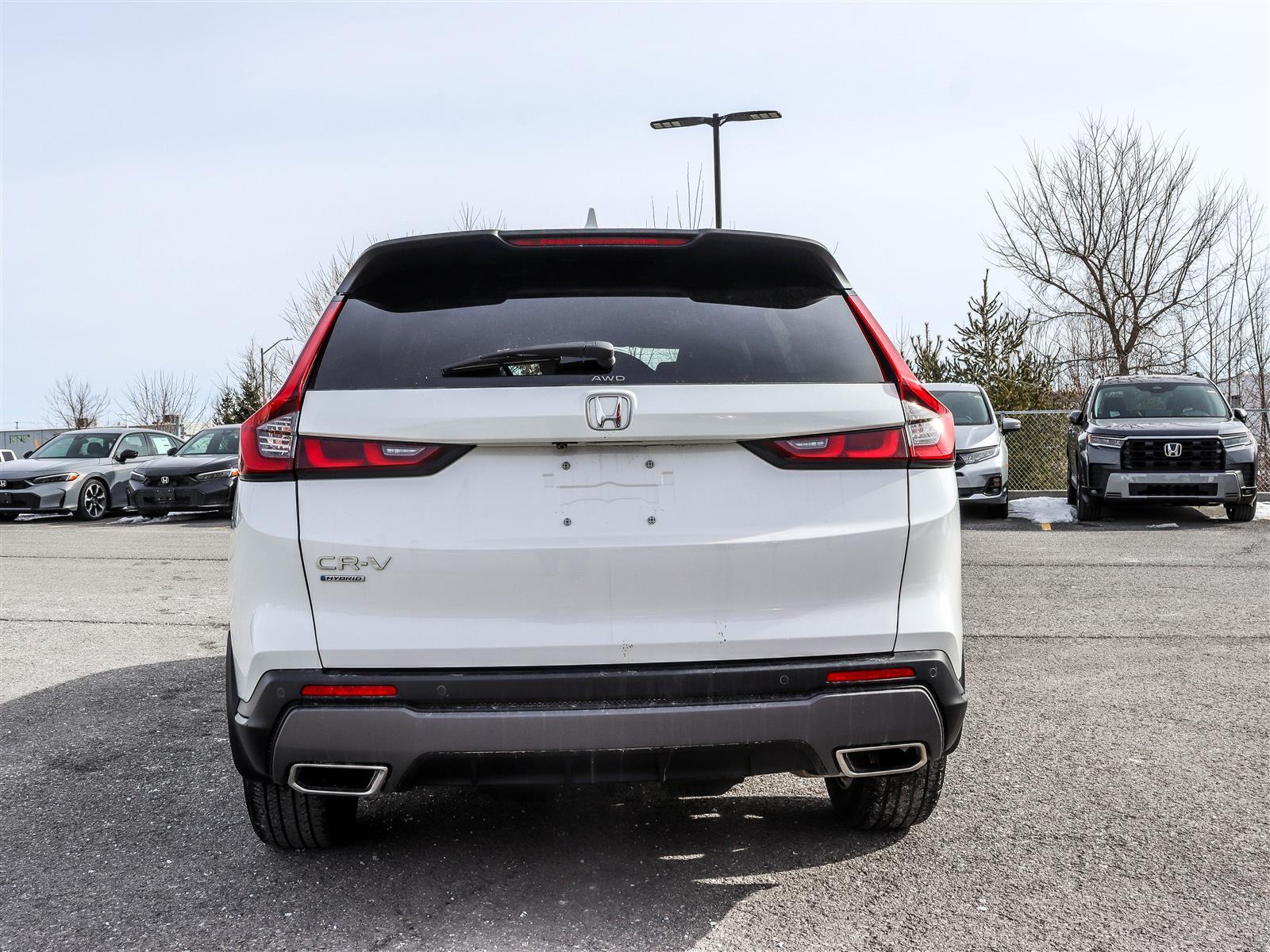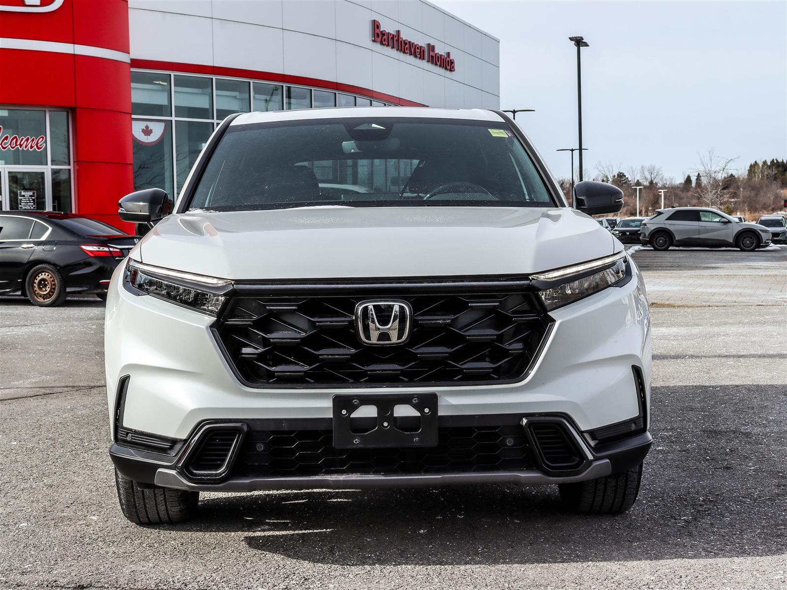 The 2024 Honda CR-V EX-L Hybrid is a premium compact SUV featuring a 2.0-litre 4-cylinder engine paired with an two-motor hybrid system, producing a total system output of 204 horsepower and 247 lb-ft of torgue. It comes standard with AWD, an E-CVT transmission, featuring leather-trimmed seating, a 9-inch touchscreen, and wireless charging